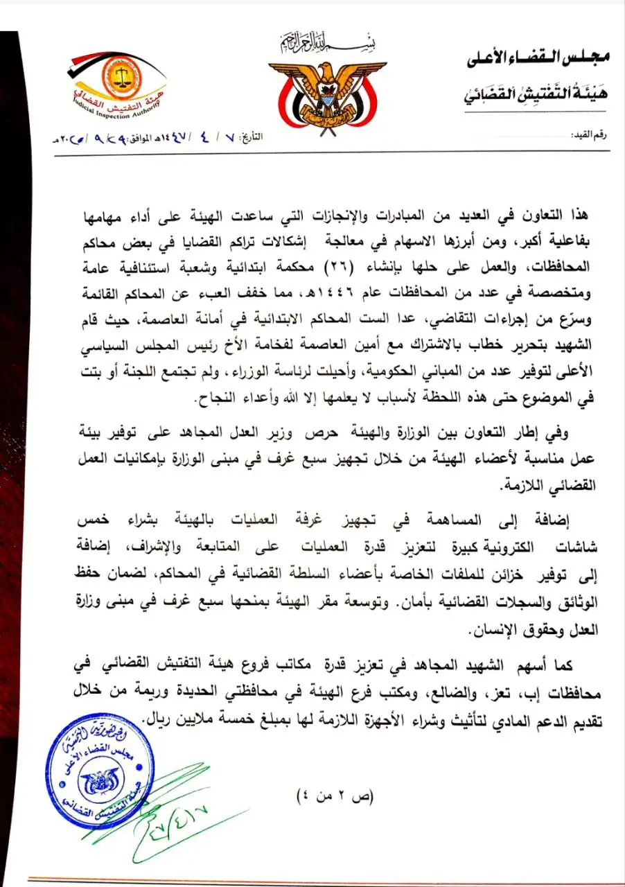 هيئة التفتيش القضائي تهيب بسرعة الفصل في القضايا الجمركية وفقا للقانون